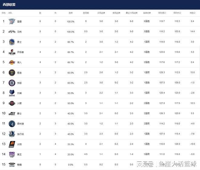 同时掘金在今天的比赛中对阵开拓者,这场比赛罗威成功复出,在这样的情况下杨瀚森遭遇弃用,而掘金虽然在硬实力强于开拓者,可在这场比赛中两队打得非常胶着,但是到了第四节最后时刻戈登惨遭封盖不说,后续格兰特还造成了戈登犯规,之后格兰特走上罚球线是成功罚中2球,虽然后续约基奇是成功接到球,可最终约基奇也未能将球打进,最终掘金是爆冷输给了开拓者。在这场比赛后掘金是直接掉到了西部第七的位置,反观开拓者则是直接反超湖人来到了西部第四的位置,至于湖人赢球后是排在西部第五的位置,灰熊输掉比赛是掉到了西部第八的位置。